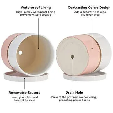 The planter comes equipped with a drain hole and saucer tray, promoting optimal plant health by preventing overwatering. This functional design keeps your spaces clean by catching excess water, allowing your plants to thrive without mess.