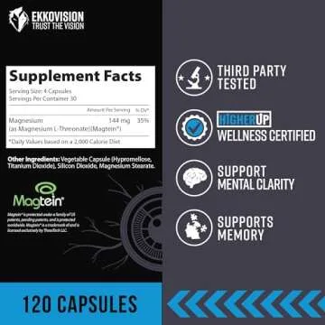 Ekko Magtein Magnesium L-Threonate, Memory & Cognitive Function Support, Magnesium Supplement with Essential Minerals for Men & Women, 2000 MG Per Serving, 120 Easy-to-Swallow Capsules