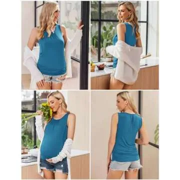 Ekouaer 3 Pack Nursint Tank Layers Maternity Comfy Tank Tops Sleeveless Breastfeeding Clothes Black+Grey+Peacock Blue M