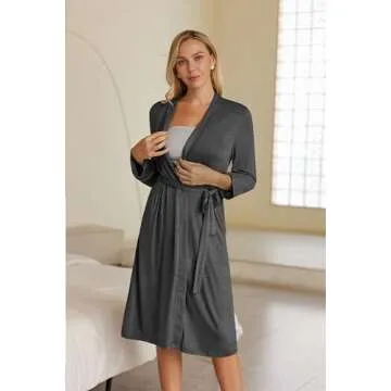 Ekouaer Birthing Robe Maternity Nightgown for Hospital Pregnancy Robes Plus Size Maternity Bathrobe Grey XL
