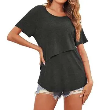 Ekouaer Breastfeeding Tops for Women Soft Postpartum Shirts Short Sleeve Nursing Loungewear Black+Dirty Pink+Deep Grey M