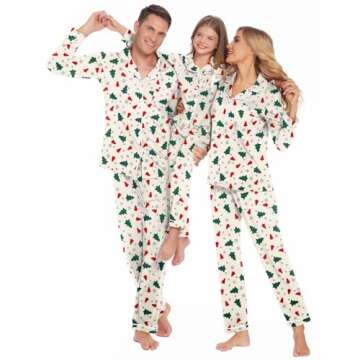 Ekouaer Christmas Family Matching Pajamas Long Sleeve Button Down Pj Set Festival Party Sleepwear White/Plaid Tree M Men
