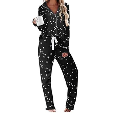 Ekouaer Comfy Pajamas for Women - Soft Black Star PJs Set