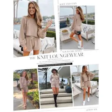 Ekouaer Knit Pajamas Set for Women Lounge Sets Long Sleeve Sweatsuit Matching 2 Piece Outfits Cute Sweater Sets Apricot M