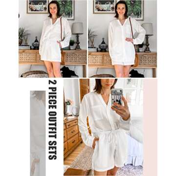 Ekouaer Lounge Sets for Women 2 piece Outfit with Pockets and Drawstring for Travel Beach Vacation White,Medium