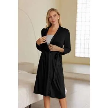 Show moreThe Ekouaer Maternity Robe 3 in 1 Labor Delivery Nursing Gown is the ideal garment for every mommy-to-be, designed with both style and practicality in mind. Made from ultra-soft and comfortable fabric, this robe ensures that you feel your best during those critical moments of maternity and beyond. Whether you're at the hospital preparing to meet your little one or cuddling up at home for midnight feedings, this robe wraps you in comfort while you embrace motherhood.
