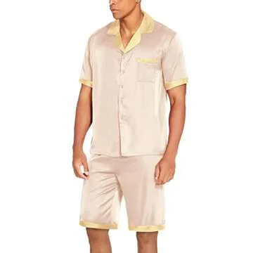 Ekouaer Men Satin Silk Pajamas Set with Pockets Sleepwear Shorts Satin Summer Loungewear 2 Piece Button Down Set S-XXL Champagne