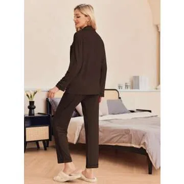 Ekouaer Pajamas Women's Long Sleeve Sleepwear Soft Button Down Loungewear Pjs Lounge Set Nightwear,Coffee,Small
