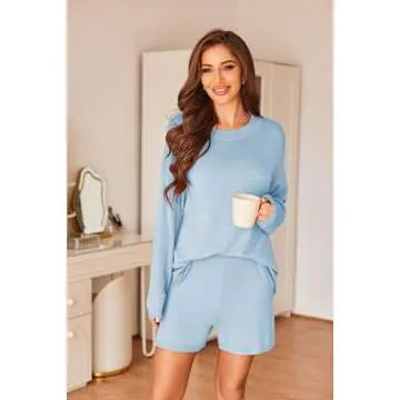 Luxurious Ekouaer Women's 2-Piece Pajama Set - Cozy Knit Lounge Set with Sweater and Shorts