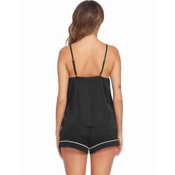 Show more Indulge in ultimate comfort and elegance with our Ekouaer Cami Pajama Set, designed for the modern woman who values both style and softness. Made from premium 96% Polyester and 4% Spandex, this ultra-soft satin fabric gently hugs your skin, making it the perfect sleepwear choice. The two-piece pajama set features a sexy lingerie style that radiates confidence and charm. With its stunning satin cami and short pajama bottoms, you will feel both relaxed and chic whether you're lounging at home or enjoying a peaceful night's sleep.