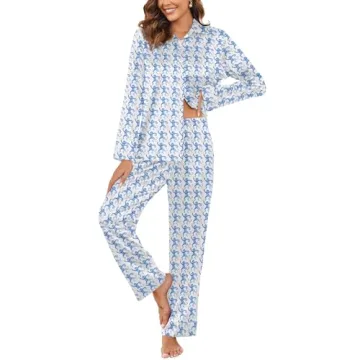 Ekouaer Silk Pajamas for Women Classic Button Down Pj Sets Satin Sleepwear Comfy Long Sleeve Loungewear Blue-Monkey S