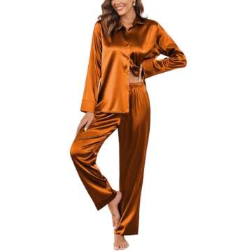Ekouaer Silk Pajamas for Women Classic Button Down Pj Sets Satin Sleepwear Comfy Long Sleeve Loungewear Caramel S