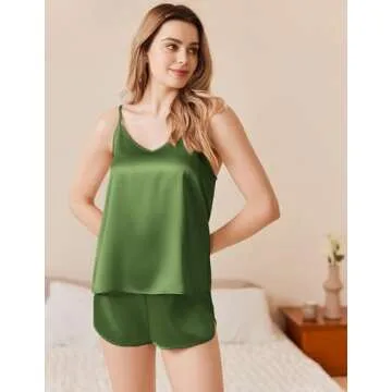 Ekouaer Silk Pajamas Set for Women Satin Camisole Sleepwear Lingerie V-Neck Cami Top and Shorts Pjs Army Green