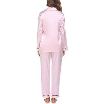 Ekouaer Silk Pajamas Women's Long Sleeve Sleepwear Satin Soft Button Up Loungewear Pjs Set S-XXL