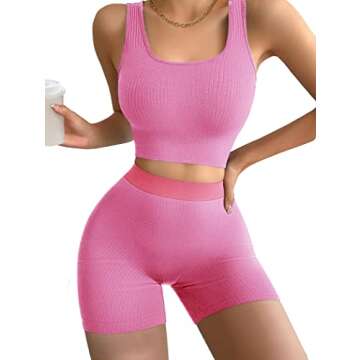 Ekouaer Summer Lounge Set for Women Knitted Tank and Shorts Pajamas Sleeveless 2PC Seamless Workout Sets Rosy,Large