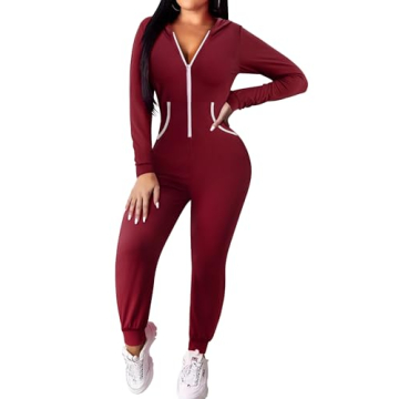 Show moreIntroducing the Ekouaer Women Hooded Jumpsuit, a delightful fusion of style and comfort, perfect for those cozy nights in or casual outings. This long sleeve onesie features a convenient zip-up design and a chic hood, tailored specifically for women who appreciate both functionality and fashion. Made from a premium blend of 95% polyester and 5% elastane, this jumpsuit is incredibly soft and lightweight, allowing for ultimate breathability while providing just the right amount of stretch to compliment your figure. Available in several gorgeous colors including an elegant Wine Red, this piece is designed to stand out without compromising on comfort. Whether you're lounging around the house, gearing up for a pajama party, or getting dressed for casual gatherings, this versatile jumpsuit is bound to become a staple in your wardrobe.