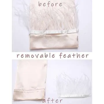 Ekouaer Women's Bridal Feather Trim Silk Satin Pajama Set Long Sleeve Lounge Sets Sleepwear (Removable Feather) Pink XXX-Large