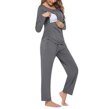 Ekouaer Women's Maternity Nursing Pajama Set Breastfeeding Sleepwear Set Double Layer Short Sleeve Top & Pants Pregnancy PJS