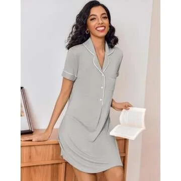 The delicate details, such as the shirt collar and gently curved hemline, enhance its allure. However, it's the thoughtful design that truly sets it apart, crafted with short sleeves and knee-length coverage to keep you cool on warm nights. For those who find comfort in classic style, this nightgown will not disappoint, proving itself a fashionable staple in any woman's wardrobe.