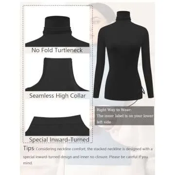 Ekouaer Women's Turtleneck Long Sleeve Shirts Slim Fit Thermal Underwear Tops Lightweight Pullover Tees Black XL