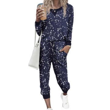 Show moreIntroducing the **Ekouaer Womens Jogger Pajama Set**, a perfect blend of comfort and style that is designed for the modern woman. Crafted from a soft and breathable blend of **95% polyester and 5% spandex**, this pajama set ensures a cozy wearing experience whether you're lounging at home or stepping out for a casual day. The set includes a **long sleeve pullover top** featuring a fashionable round neck and raglan sleeves, paired with full-length loose jogger pants that come equipped with **side pockets** for added convenience. The elastic waistband and ribbed ankle cuffs provide a great fit that molds to your body without sacrificing comfort.