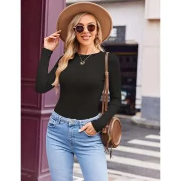 Ekouaer Womens Long Sleeve Shirts Crew Neck Fitted Ribbed Tops Basic Base Layer Soft Thermal Undershirts Tee Black M