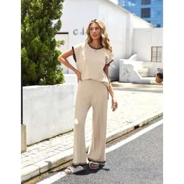 Ekouaer Womens Matching Sets Knit Sweater Sets 2 Pieces Outfits Pullover Tops Wide Legs Pants Lounge Set