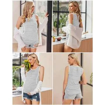 Show moreIntroducing the **Ekouaer Women’s Maternity Tanks** – a perfect blend of practicality and comfort designed specifically for breastfeeding mothers. This **3-pack nursing tee set** features three stylish colors: classic black, serene grey, and timeless white stripes, ensuring you stay fashionable during your pregnancy and nursing journey. Crafted from a soft blend of **95% Rayon and 5% Spandex**, these tops are not only breathable but also provide the stretch needed for comfortable wear throughout all stages of pregnancy. Whether you’re lounging at home or stepping out, these versatile tanks offer a chic solution without compromising on comfort.