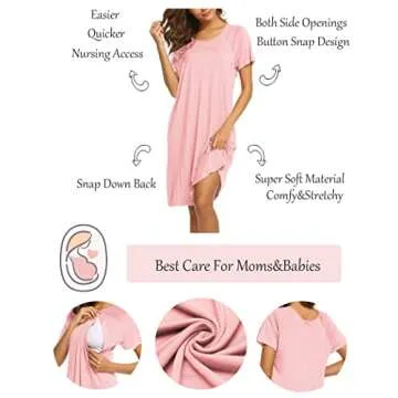 Ekouaer Women's Maternity Nightgown for Labor and Delivery, Soft Cotton Nightshirt, Pink, Small
