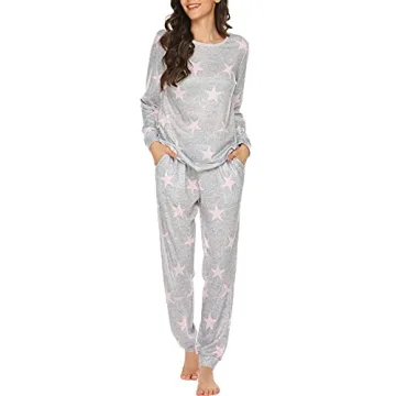 Featuring a chic round neck long sleeve top paired with elastic waist long pants, this pajama set is versatile enough for both serenity at home and stylish entertaining. The playful star print adds an element of fun, letting you express your unique personality even during the most relaxed moments. Your evenings will never be the same with this lively ensemble that guarantees a flattering silhouette while offering practicality through its flexible waist and side pockets. Whether you’re curling up with a book or entertaining friends, this set ensures ultimate comfort.