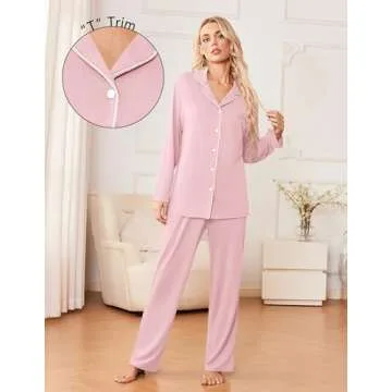 Ekouaer Womens Pajama Sets 2 Piece Long Sleeve Sleepwear Soft Button Down Pjs Lounge Set Pink S