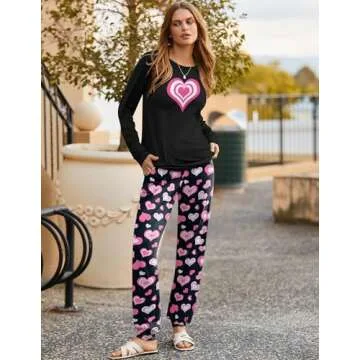 Ekouaer Womens Pajama Sets Long Sleeve Print Sleepwear Soft Pjs Casual Pullover Tops Joggers Pants with Pockets Pink Heart S