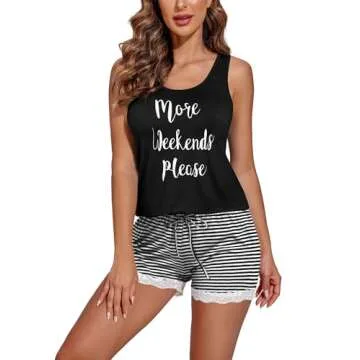 Ekouaer Womens Pajama Sets Sleeveless Tank Top and Shorts Pj Set Lace Hem Sleepwear S-XXXL Black
