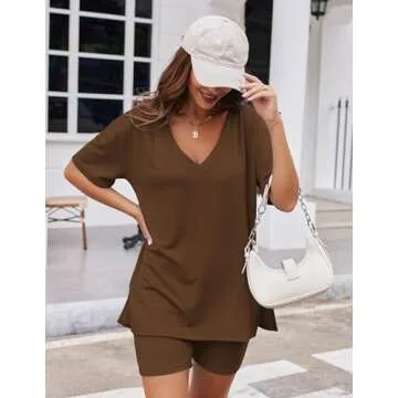 Show moreIntroducing the Ekouaer Womens Pajamas 2 Piece Lounge Set, the perfect blend of style and comfort for the modern woman. Designed for those who refuse to compromise, this lounge set features a short sleeve oversized T-shirt with a deep V-neck and a chic side slit, making you effortlessly stylish whether you are enjoying a cozy day at home or stepping out for errands. The reversible T-shirt adds extra versatility to your wardrobe, allowing you to easily switch up your look to match your mood or the occasion. Paired with bodycon biker shorts that boast a high-waist design, this outfit flatters all body types and serves as a go-to choice for any casual outing.