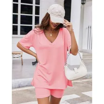 Show more The ultimate blend of comfort and style, this 2 Piece Lounge Set is your new go-to for casual attire that doesn’t compromise on fashion. Featuring a fabulous short sleeve oversized T-shirt with a deep V-neck and side slit, this set allows for maximum comfort with a touch of chicness. The T-shirt's oversize design caters to all body types, ensuring that everyone feels fabulous while lounging or heading out.