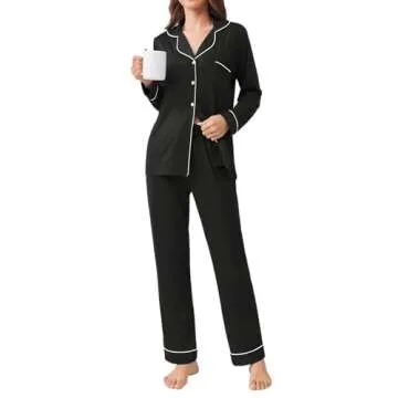 Ekouaer Womens Pajamas Set 2 Piece Button Down Sleepwear Soft Long Sleeve Top and Pants Pjs Lounge Sets Black L