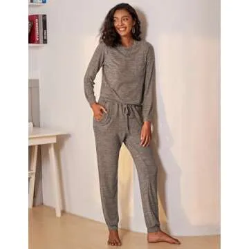Ekouaer Womens Pajamas Set Long Sleeve Loungewear Soft Lounge Set Joggers with Pockets,Large,Light Brown