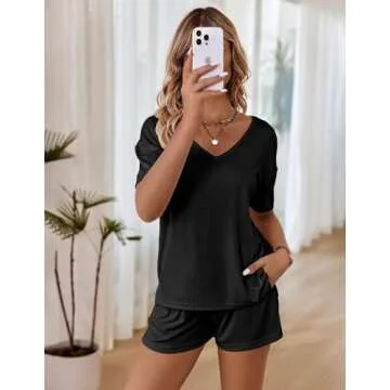 Show moreIntroducing the Ekouaer Women’s Ribbed Knit Lounge Set, a perfect blend of style and comfort tailored for every modern woman. This two-piece pajama set consists of a short sleeve top accompanied by drawstring elastic waist shorts, making it an ideal choice for lounging at home or a cozy night’s sleep. Constructed from super lightweight, breathable ribbed fabric, this set ensures you stay comfortable without compromising on style. The high elastic design offers a roomy fit that accommodates various body types, making it a fantastic option for anyone, including during maternity or postpartum stages. Available in an elegant black color, this lounge set promises to complement your wardrobe effortlessly.