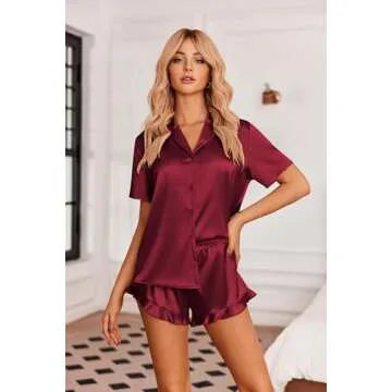 Ekouaer Women's Silk Pajamas Set - Luxurious Button Down Ruffle Sleepwear