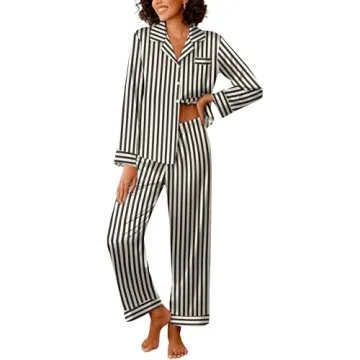 Indulge in the luxurious comfort of the Ekouaer Women's Satin Pajama Set, artfully crafted to elevate your sleepwear collection. Made from a premium blend of 95% polyester and 5% spandex, this silky fabric is not just soft and cozy but also breathable, ensuring a refreshing night's sleep. This pajama set features a classic long-sleeve top adorned with a trendy notch collar and a full-button front that combines style with practicality. Its chic one chest pocket adds an elegant touch, making it perfect for...