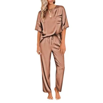 Show moreExperience a new level of comfort with the Ekouaer Womens Silk Satin Pajamas Set. This exquisite two-piece sleepwear ensemble is crafted from ultra-soft satin silky fabric that glides over the skin, providing a luxurious touch to your nighttime routine. The pullover tee top features a relaxed fit, adorned with short sleeves and a chic crewneck, while the cute chest pocket adds a flair of casual elegance. Designed for ultimate relaxation, the pajama set ensures breathability and a cozy fit, making it your new go-to sleepwear choice.