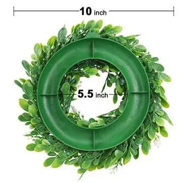 Show moreWelcome the beauty of nature into your home with the stunning ElaDeco 10" Faux Boxwood Wreath. This exquisite artificial greenery wreath is specially designed to enhance your indoor and outdoor spaces with a touch of vibrant elegance. Measuring a generous 10 inches in overall diameter and 5.5 inches in inner diameter, this wreath features a durable plastic round frame that is perfect for hanging on your front door or any wall in your living space. The use of premium quality ultraviolet resistant plastic ensures that this wreath will maintain its beauty for years to come, resisting fading and tearing, no matter the weather conditions.