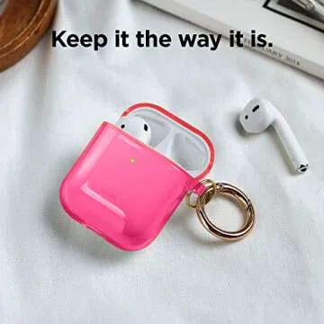 elago Clear Airpods Case with Keychain Designed for Apple Airpods 1 & 2 (Neon Hot Pink)