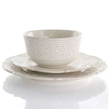 Elama Round Decorated Stoneware Scallop Embossed Dinnerware Dish Set, 16 Piece, Luna
