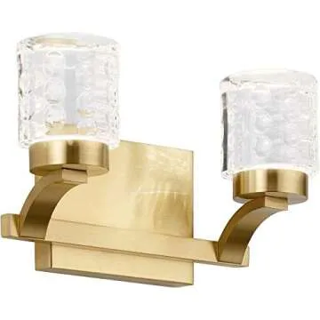Show moreIlluminate your space with the Elan 84040CG Rene Vanity Light, a stunning blend of modern design and efficient functionality. Finished in a luxurious Champagne Gold, this two-light LED fixture not only provides ambient lighting but also adds a touch of elegance to any bathroom or vanity setup. Crafted with a durable steel body and accompanied by crystal-clear glass shades, this lamp beautifully diffuses light, creating a warm and inviting atmosphere. With a total output of 32 Watts, this LED vanity light ensures that you enjoy enhanced brightness while being energy-efficient, making it perfect for daily use.