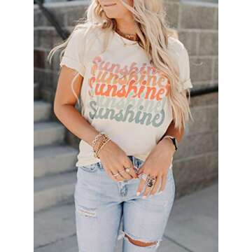 Elapsy Womens Summer Comfy Ripped Distressed Cotton Tee Sunshine Graphic Rolled Sleeve Slogan T Shirts Basic Tops Shirt and Blouse White L