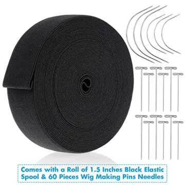 Elastic Band for Wigs, Cridoz Black Elastic Wig Band Elastic Strap Spool with 60pcs Weaving Needles and T Pins for Wigs and Sewing (1.5 Inch X 11 Yard)