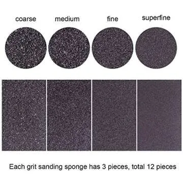 Elcoho 12 Pieces Sanding Sponge Coarse Medium Fine Superfine 4 Different Specifications Assortment Sanding Blocks, Washable and Reusable Sand Sponge Kit