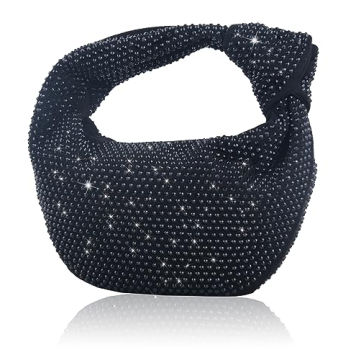 Show moreIntroducing the **ELDA Knotted Handbag**, a stunning small bling full rhinestone purse that exudes elegance and style. Crafted from high-quality flocked fabric and embellished with dazzling rhinestones, this designer ladies hobo dumpling bag is a showstopper for any occasion. Measuring 8.2 inches in length, 3.5 inches in width, and 9.4 inches in height, it’s designed to hold all your essentials like mini wallets, cell phones, cards, and keys. The chic jet-black hue adds a touch of sophistication, making it a versatile accessory whether you’re dressing up for a wedding or simply going out for a casual brunch.