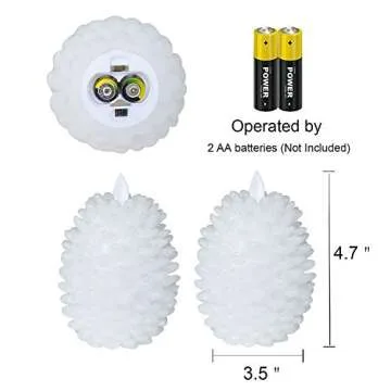 Show moreTransform your home into a winter wonderland with the stunning Eldnacele LED Pine Cone Candles. Designed to replicate the enchanting shape of pine cones, these unique candles are crafted from real wax in a pristine white hue, making them the perfect addition to your festive décor. The package features two exquisite candles, each measuring D3.5" x H4.7", accompanied by a user-friendly 10-key remote control. With their realistic appearance and soft glow, these flameless candles will create a magical atmosphere for your holiday gatherings or any cozy evening.